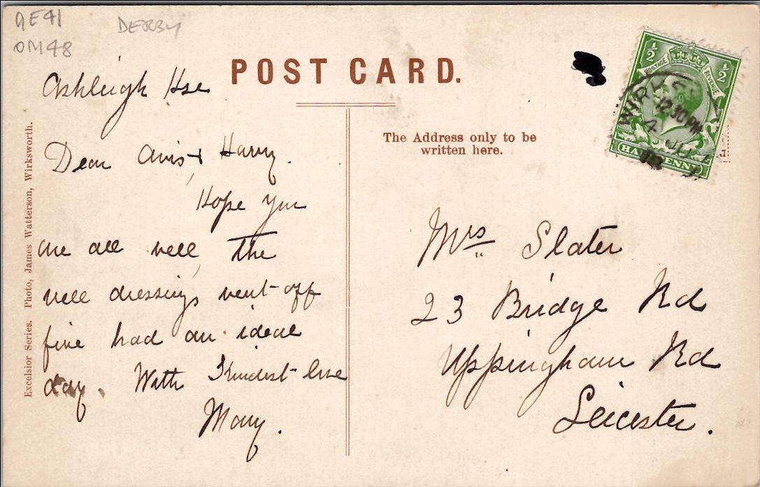 A view of Wirksworth from the North. The postcard shows the town’s main street and the surrounding hills.